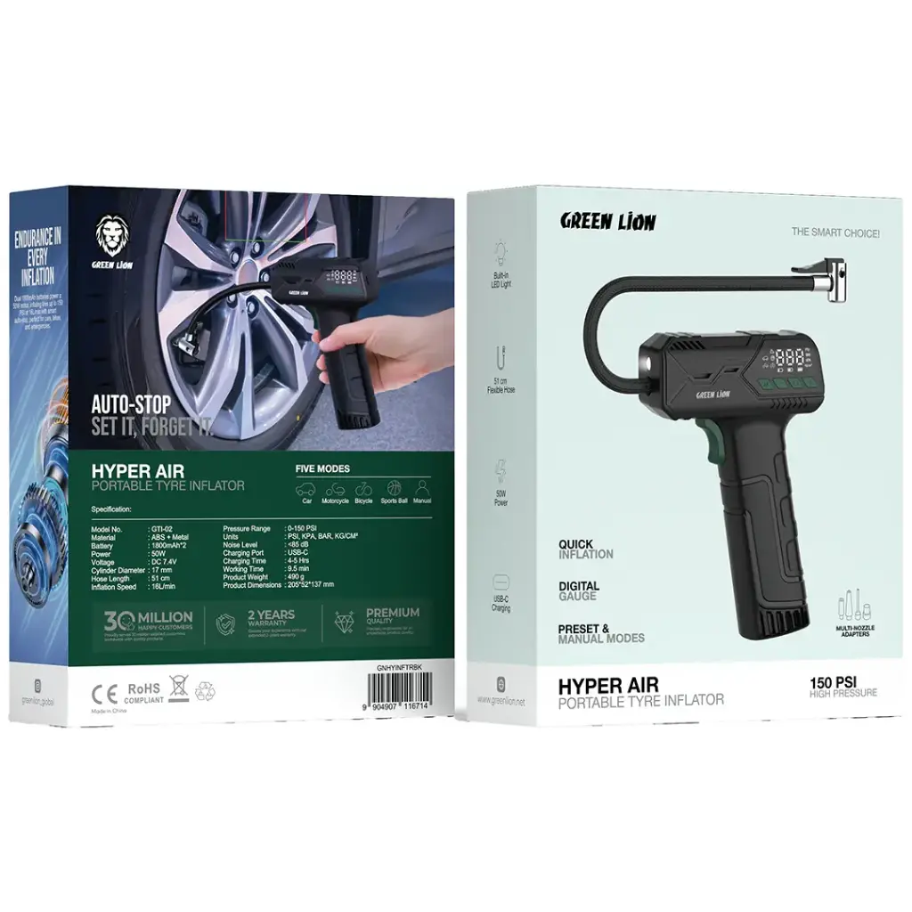 - Green Lion Hyper Air Portable Tire Inflator - Black Green Lion Hyper Air Portable Tire Inflator - Black