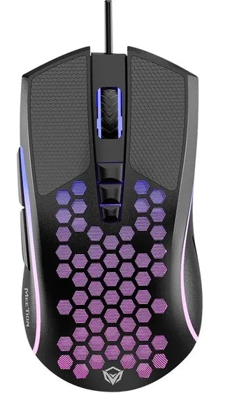 Meetion GM015 Lightweight Honeycomb Gaming Mouse | 6400 CPI | 6000 fps Frame Rate | 125-1000 Hz/ms Polling Rate | 8 Programmable Buttons | Bright Adjustable Backlight | Plug and Play - Black